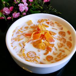 1.Prepare ingredients: milk, papaya, corn cereal.