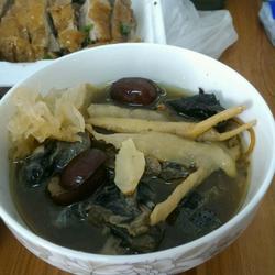 7. After the black-bone chicken is cooked for 40 minutes, put the snow fungus together and cook for two You can eat it in a few minutes
