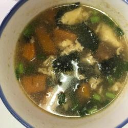 6.Then add eggs, seaweed, chopped green onion, a little salt and cook for one minute