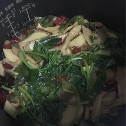 5.After about twenty minutes, uncover the pot, pour in the king oyster mushrooms and continue Simmer until fragrant...