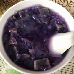 5. Take it out in a bowl and let it cool for 5 minutes.Add in the sago (it will taste after refrigeration) Better), a bowl of healthy and nutritious purple sweet potato, white fungus and sago is ready~