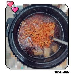 3.Put the cooked ribs into the stew pot, and then add an appropriate amount of water Fill it up, add salt, and press the muscle button on the stew pot.