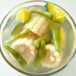1.Boil fresh pumpkin, green beans and green baguettes together to make the aroma more intense; 2.Remove the foam to make the soup clean; 3.Tender pumpkins cannot withstand cooking, so they need to be put in later