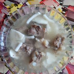 4.A bowl of sweet and delicious coconut meat and coconut milk pork ribs soup is ready.