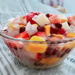 9.Pour the cooked white fungus into a bowl and add the honey beans.