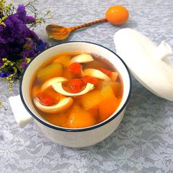 1.Prepare rock sugar, eggs, cantaloupe, and dried strawberries