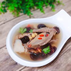 5. After cooking for 10 minutes, transfer to an electric casserole, turn to medium-low heat, add in and prepare Stew the red dates, wolfberry, yam, Yizhi, soaked shiitake mushrooms over medium-low heat for 1 hour.