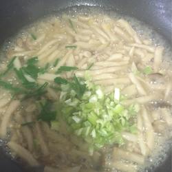 3. Stir-fry the crab-flavored mushrooms to get a little water and fry the ginger shreds halfway.Then add water to cover around the mushrooms