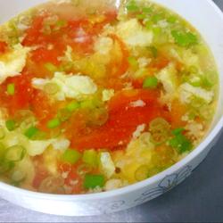 4. Pour an appropriate amount of water into the pot and bring to a boil.Pour in the tomatoes and bring to a boil.Gently pour the mixed eggs into the pot.Where the water is boiling, add chicken essence, sesame oil, salt and sugar at this moment.After 3 minutes, add chopped green onion and put it into a bowl.