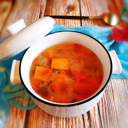 7. Boil the white fungus until thick, add the papaya and simmer for half an hour.