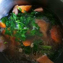 7. Also use a small pot, I put the carrots on the stove and bring to a boil.When the carrots become soft, add salt and MSG, and add some coriander.
