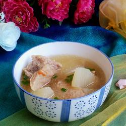 5.Put the ribs, white radish and wolfberry into the pressure cooker, and Add appropriate amount of water