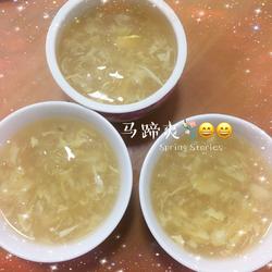 The water chestnuts should be cut into small particles.When pouring the water chestnut powder, stir constantly.When adding the eggs, stir constantly.