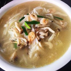4.Add white radish and pocket mushrooms, stir-fry, and add some cooking wine