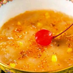 6.Place the diced yellow peach and decorative cherries and enjoy.