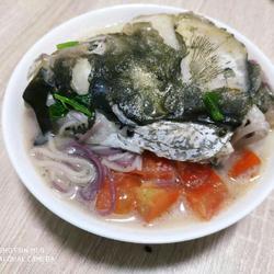 1.Cut the fish head, dice the tomatoes, shred the ginger, and cut the coriander into small pieces