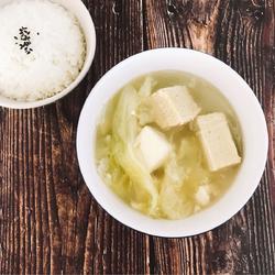 1.Tear the cabbage into pieces and cut the tofu into cubes