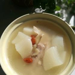 6.After ten minutes, turn down the heat and simmer slowly for an hour, then add the radish cubes and cook for 30 minutes.Do not add water during stewing.After the radish is cooked soft, add a little wolfberry, salt and chicken powder, and season.