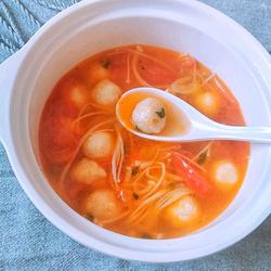Choose ripe tomatoes to stir-fry the juice better, and add enoki mushrooms to make the meatball soup taste even more delicious!