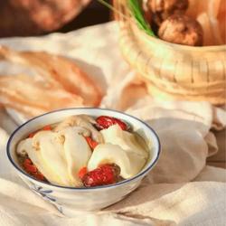4.Add fresh matsutake slices, red dates, and wolfberries to the soup that has been simmered for 3 hours, and simmer for another half an hour;