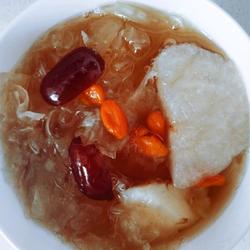 7.Put white fungus, red dates, and wolfberry into the pot, pour in an appropriate amount of water, first heat for 10 minutes, then change to medium heat 20 minutes