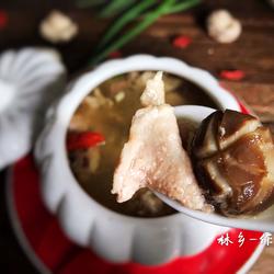 11.Take out the steamed mushroom lean meat soup, pinch out the ginger slices and discard them