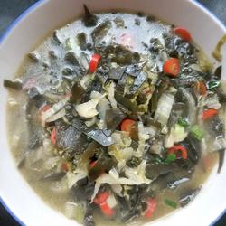 4.Hot Add oil to the pan and stir-fry until the kelp water dries up and makes a crackling sound.Add the pickled cabbage and stir-fry, then add water to cover the kelp.