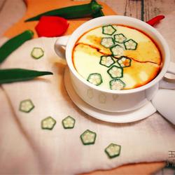 4. Pour the egg liquid into the steamed egg cup, and place the okra on the surface.into the look you like.