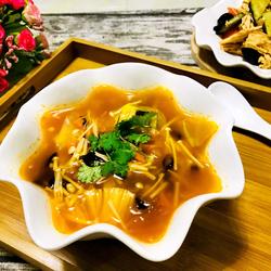 4.Put the ingredients into the casserole - tomatoes, enoki mushrooms, fungus, carrots