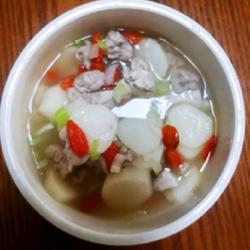7.Replace the water in the pot, pour the sheep brain and yam into the pot, add the wolfberry and cook over high heat
