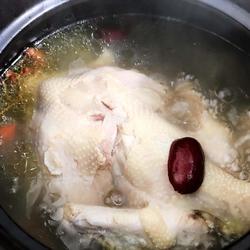 7. Prepare a soup pot and put the three-yellow chicken, stewed chicken ingredients, onions, ginger, garlic, red dates, wolfberry, etc.;