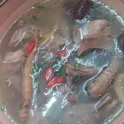 4.After boiling the water, put it in a casserole, add ginseng, red dates, rice wine and ginger