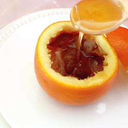 6.Cut the red dates, tremella, rock sugar and longan into the orange shell