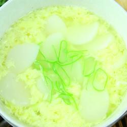8.Add salt and bring to a boil again, add minced green onion and cook for 30 seconds