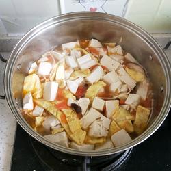 5. Add egg sticks and tofu, bring to a boil and season with appropriate amount of salt.