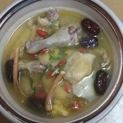 1.Wash the old hen and blanch it in water.After blanching the water, put it into the pressure cooker, add rice wine, and press the soup button