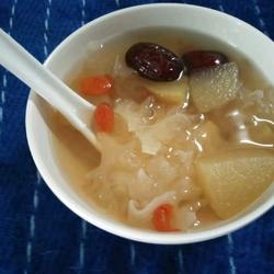 1. Soak the white fungus in warm water one night in advance until it is larger than before One circle almost bursts when picked up by hand.