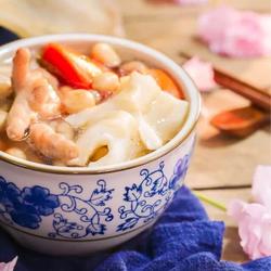 4.Put carrots, peanuts, chicken feet and New Zealand fish maw into a stew pot and fill it with water;