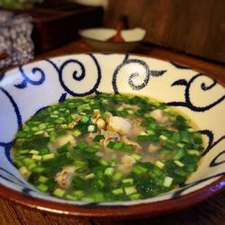 9.A few simple steps , a bowl of delicious seafood leek soup is ready.The sesame oil plays a role in removing the fishy smell and improving the aroma, which is very important!
