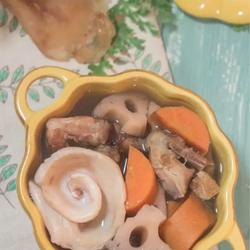 4.Put carrots, lotus roots, ribs and fish maw into a bowl and simmer for 3 hours;