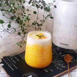 2.Cut the mango into cubes and put it into the Joyoung food processor cup, add milk