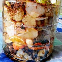 6.Put the above fruits into the bottle in the order of one layer of fruit and one layer of sugar.Put lemon in the last layer and then brown sugar.The last layer must be sugar.Make sure there is room in the bottle for fermentation.Finally, the bottle is sealed and the date of production is affixed.Place in a dark place and wait for 3 months.