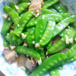 3.The meat is fried in advance, stir-fry the meat residue, add minced garlic, stir-fry and add lentils, stir-fry and add appropriate amount of salt and chicken essence, and it is ready to serve.This time is very short because the lentils have already been fished out.Basically cooked.