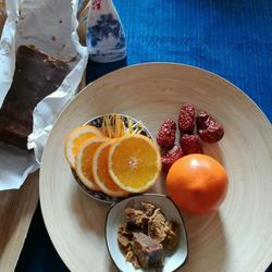 2.Put an appropriate amount of water into the pot, bring to a boil, add brown sugar, sweetener Boil oranges and red dates for about 10 minutes, scoop out and put into a flower teapot, as shown in the picture.