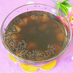 If the black sesame seeds are cooked sesame seeds , you can wait until the rock sugar snow pear is cooked before sprinkling it in.