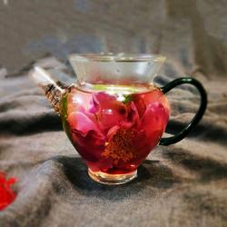 5. Prepare a larger teapot while boiling water.Add a large rose.