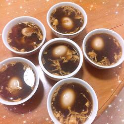 5.Put in the peeled eggs and add an uncooked egg.When Egg flowers, for beauty.