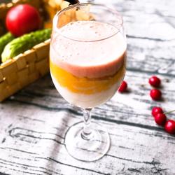 15. Slowly pour the tomato milkshake on top of the mango milkshake.