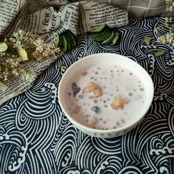 10.Cook until white dots appear in the middle of the sago, then turn off the heat and simmer for a while