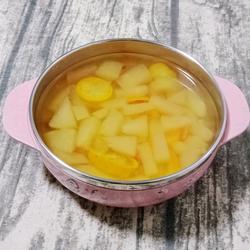 Put diced apples, kumquat slices, and hawthorn dices Pour into the stew pot